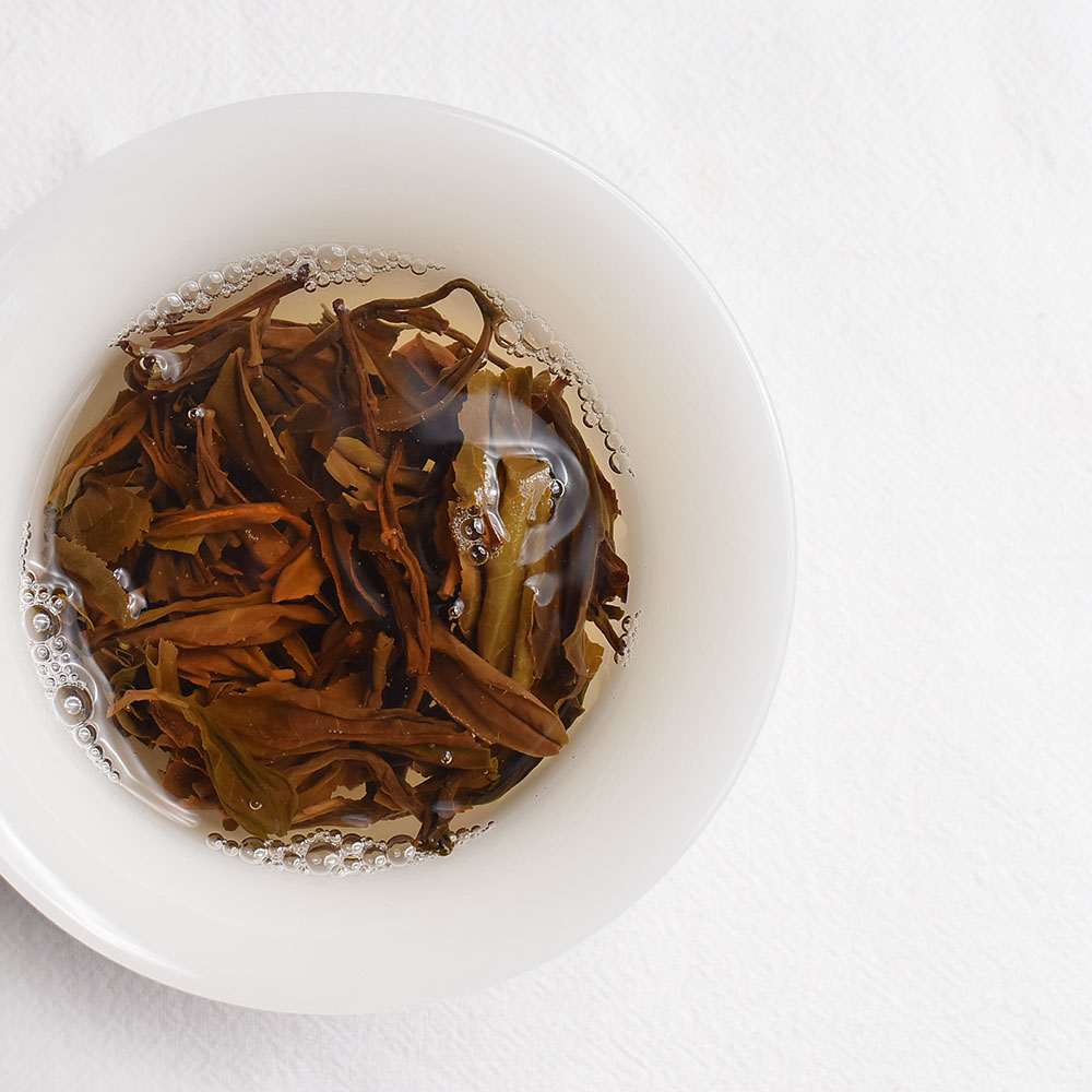 After brewing, the liquor is clear and bright, orange-yellow with a light amber hue. The aroma features refined floral notes with subtle mountain character, while the palate is mellow and sweet with good energy, a smooth texture, building depth, and a lingering finish.
