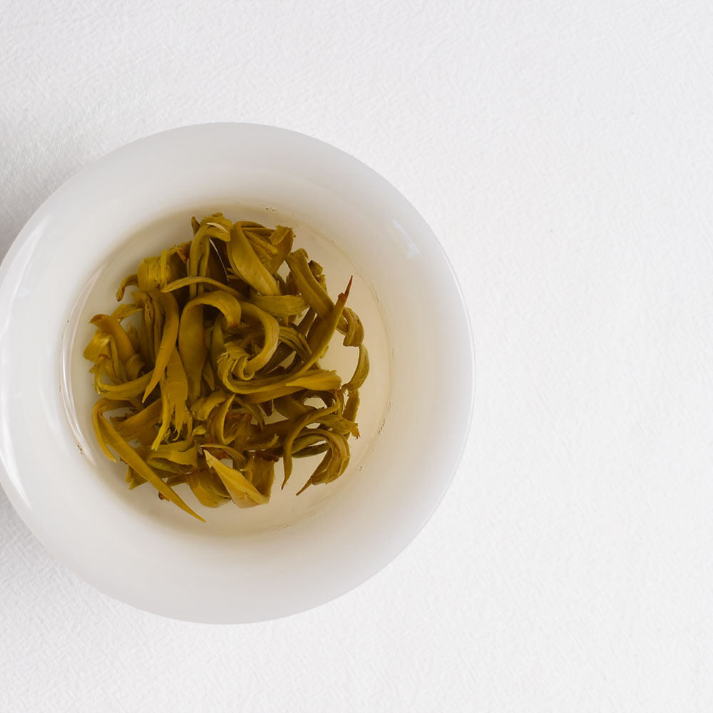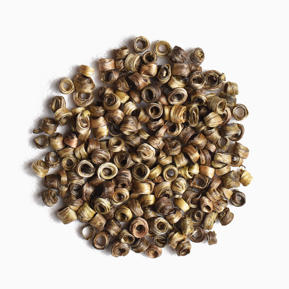 The Jasmine Girl’s Ring is named because the appearance of it looks like the earrings which belong to one kind of craft teas. It uses high-quality green tea from Yunnan as raw material and then be scented with fresh jasmine blossoms in Guangxi. The aroma of it is overwhelming and pleasing loved by many tea lovers.