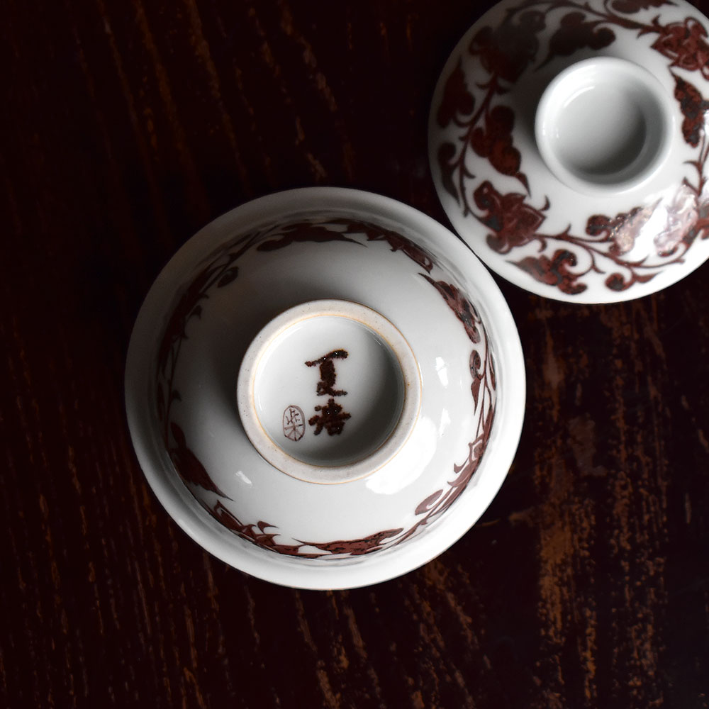 Red Under-Glaze Intertwined Lotus Gaiwan