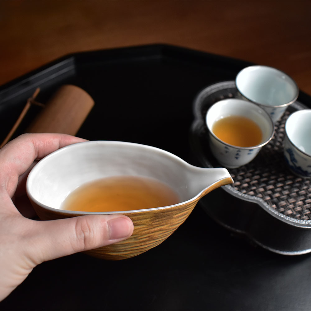 這款公道杯兼具傳統工藝與當代審美,既實用亦耐看。古樸的肌理與溫潤的釉色,使倒茶的每一刻都顯得從容而有儀式感。